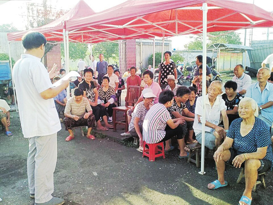 (記者 胡新芳 通訊員 郭美娟 尹振雄)近期,呼吸道疾病高發。日前,分界鎮南周村衛生服務站站長趙道清了解到前來就診村民較多的情形,就自己借來遮陽蓬,利用早晨時間給農戶講解夏日治病、防病的相關注意事項。他表示,這樣的活動將一個月至少舉行一次,通過向群眾免費講解常見疾病、季節性疾病以及一些慢性病的防治,提升村民身體素質。
