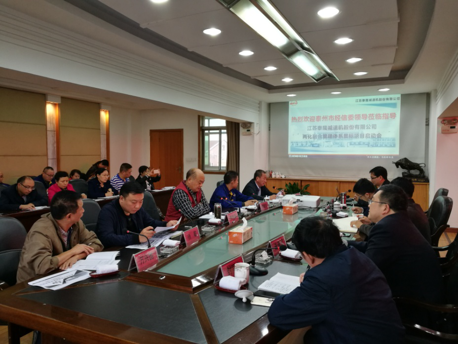 10月14日下午,江蘇泰隆減速機股份有限公司(以下簡稱“泰隆”)兩化融合管理體系貫標項目啟動會順利舉行。此次貫標啟動會由泰隆主管信息化工作的副經理曹保平主持,公司董事長殷根章、副經理萬興國、徐敬、黃留生和各部門主管、骨干41人和江蘇徐工信息技術股份有限公司副總經理邱旭東、兩化融合高級顧問陶建家參會,泰州市經信委企業信息化處處長孔令虎、泰興市經信委副主任朱承軍、信息產業科科長封同息出席會議。