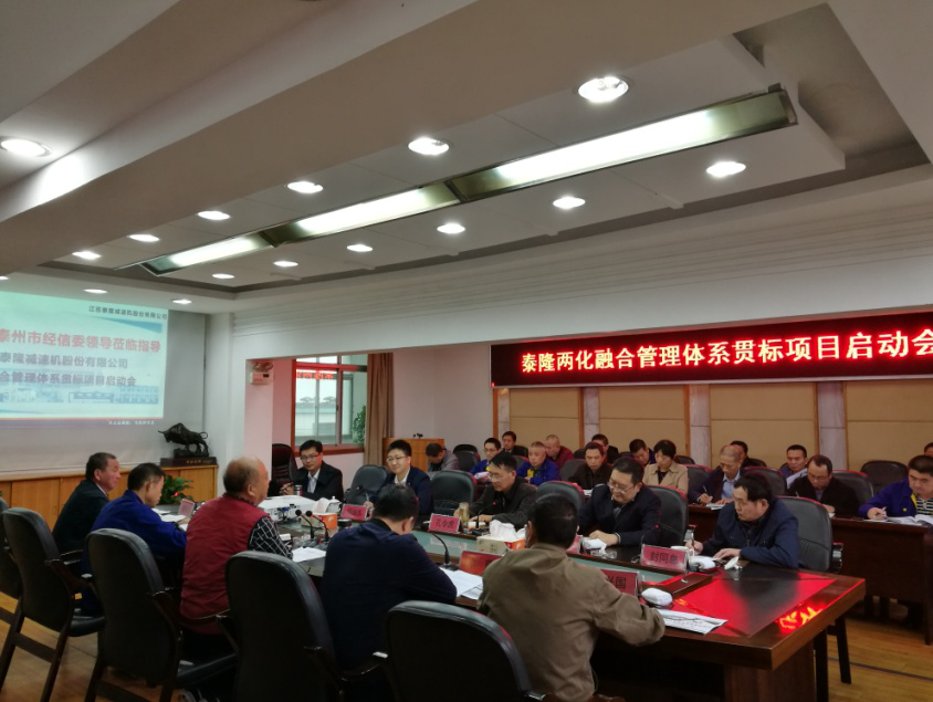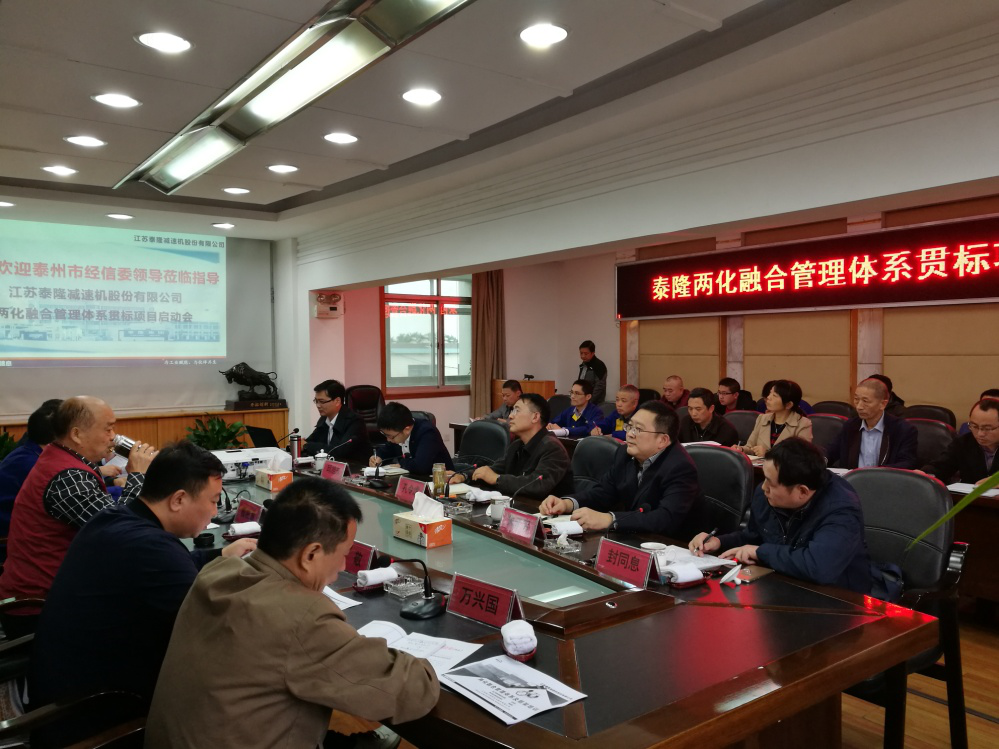 會上,徐工集團兩化融合高級顧問陶建家對兩化融合貫標工作計劃進行了部署,從項目的背景與意義、項目實施方案、項目計劃與安全等方面,對兩化融合管理體系基本內涵和貫標實施方法與過程進行了介紹,并承諾以優質資源支持泰隆的貫標項目,切實有效的幫助泰隆建立一套科學規范、可執行、可落地的兩化融合管理體系,助力泰隆的兩化融合建設和轉型升級。 徐工信息副總經理邱旭東就我司貫標項目進行了表態發言,邱總表示,兩化融合是國家戰略,是新常態下各行業轉型升級、跨越提升的必由之路,也是企業推進智能制造、降本增效的關鍵途徑。徐工信息將與泰隆精誠合作,共同推進好項目工作,確保兩化融合在江蘇泰隆落地生根、開花結果。 緊接著,泰州市經信委孔令虎處長講話指出,要從三個方面來理解兩化融合的深刻內涵:首先,兩化融合是一種有效的方法論,其次,兩化融合目的在于打造新的競爭能力,第三,推進兩化融合必須要堅持數據驅動?滋庨L簡要介紹了各級政府對企業推進兩化融合工作的獎勵政策,鼓勵企業大膽投資、奮力推進。他要求,泰隆要充分運用現有的軟硬件條件,自始至終一把手重視、全體員工積極參與貫標工作,努力把泰隆建設成為國家兩化融合管理體系貫標示范企業。