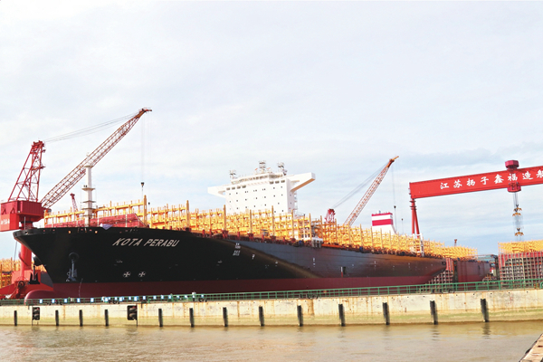 集裝箱船是揚(yáng)子鑫福造船公司的主打產(chǎn)品,單體船舶長337米、寬48.2米,船底到甲板高27.2米,這是目前中國民營企業(yè)自主研發(fā)、擁有自主知識(shí)產(chǎn)權(quán)、對外出口最大集裝箱船。公司今年計(jì)劃開工10條船、192萬載重噸,計(jì)劃交船7條、152萬載重噸。目前為止已經(jīng)交了5條、接近100萬載重噸。