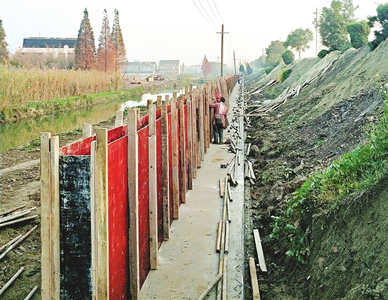 (記者 周冰 通訊員 張錦程 攝)我市計(jì)劃投入6.2億元實(shí)施長(zhǎng)江生態(tài)濕地和綠色廊道建設(shè)工程,連日來,洋思港至六圩港段正加快實(shí)施土方、防浪墻等工程,屆時(shí),將形成12公里生態(tài)林帶和生態(tài)產(chǎn)業(yè)融合區(qū)、生態(tài)田園風(fēng)光區(qū)、生態(tài)人文體驗(yàn)區(qū)的大江風(fēng)貌。圖為施工人員正在進(jìn)行擋墻施工。