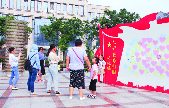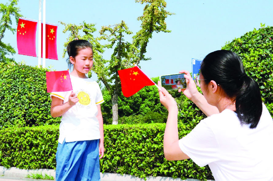![]() 中秋假期期間,許多家長紛紛帶著孩子來到“國旗街”和國旗合影拍攝點,與國旗同框,定格最自豪的瞬間。