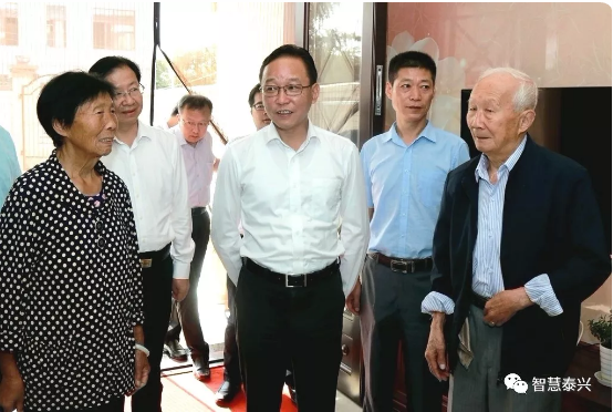 在離休老干部錢廣儉家中,張坤為他戴上慶祝中華人民共和國成立70周年紀念章,并與他聊家常、話發展、談變化。錢廣儉是原縣糧機廠廠醫,1949年3月參加工作。張坤強調,離休老干部是彌足珍貴的寶貴財富,是指引廣大干部群眾不忘初心、牢記使命的先鋒模范,是激勵廣大干部群眾實干奮進、拼搏進取的榜樣標桿。希望離休老干部能繼續關心支持泰興發展,為我市各項事業發展加油鼓勁、建言獻策。