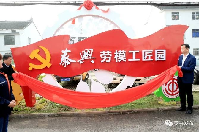 4月28日上午,“泰興勞模工匠園”揭牌儀式在黃橋鎮祁巷村舉行。泰州市總工會副主席朱秀宏,我市市委常委、組織部部長孔令明為“泰興勞模工匠園”揭牌。