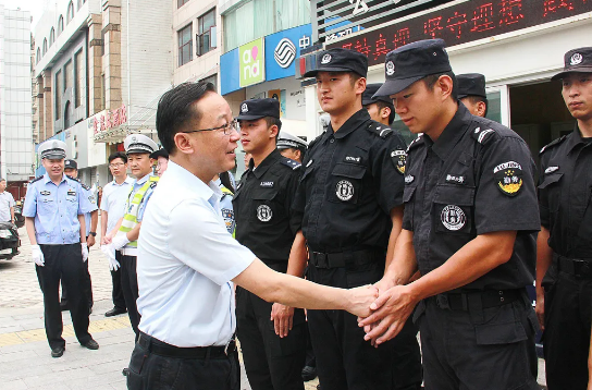 在鼓樓廣場金鳳崗亭,張坤與正在執勤的交警、巡特警一一握手,感謝他們對全市交通以及文明城市創建等工作所做的貢獻。希望他們在執勤的同時,加強高溫天氣下的自我防護意識,合理安排工作時間。