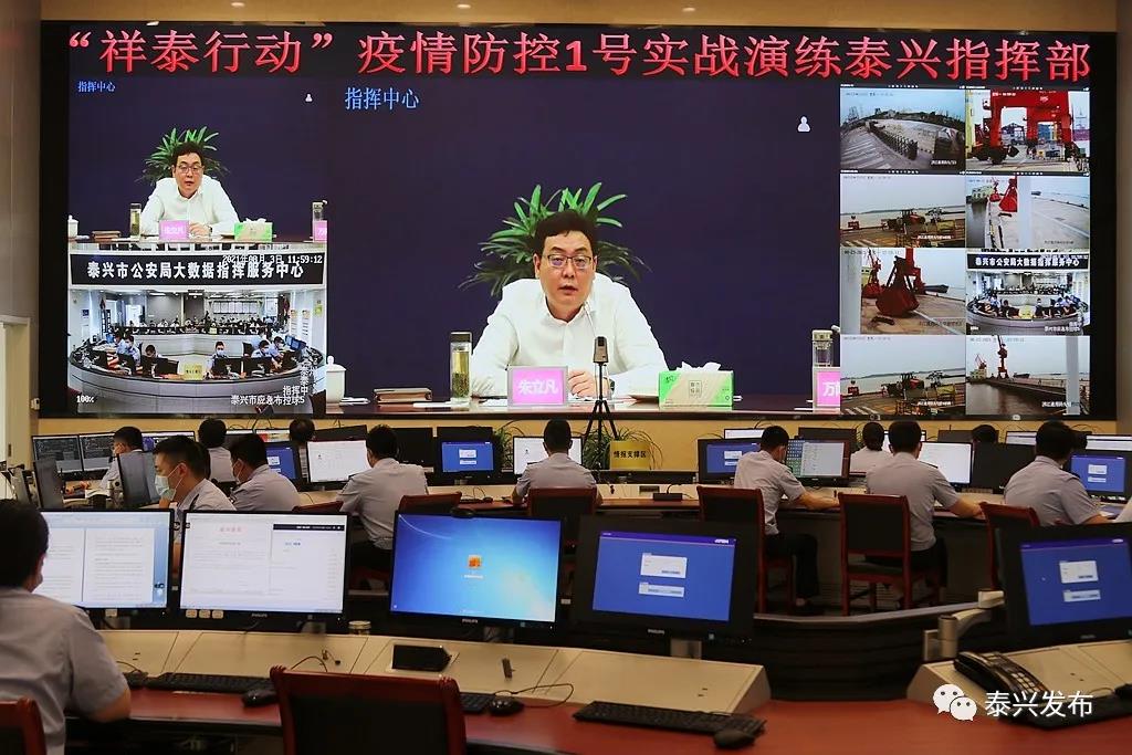 8月23日,泰州市開展“祥泰行動”疫情防控1號演練,旨在深入貫徹落實國務院聯防聯控機制和省、市疫情防控工作領導小組部署要求,進一步加強常態化疫情防控工作,提升快速協同高效處置突發公共衛生事件的能力,保障人民群眾生命安全和身體健康。泰州市委書記朱立凡,泰州市委副書記、代市長萬聞華等在泰州市公安局大數據指揮服務中心觀摩演練。我市市委書記張坤,市委常委、常務副市長劉輝,市委常委、宣傳部部長王亮,副市長李雙山、惠星參加泰興港口碼頭板塊演練。