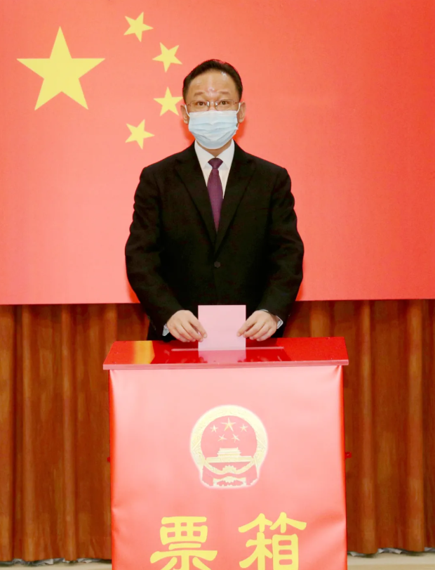 市第177選區市委辦公室投票站,五星紅旗鮮艷奪目,鑲嵌著國徽的紅色票箱端放正中,投票工作規范有序,現場氛圍莊重熱烈。上午8時30分許,張坤來到市第177選區市委辦公室投票站,仔細了解有關選舉事項的說明,拿出選民證交給工作人員核驗,領取一張選票,在寫票處認真填寫選票后,走到票箱前鄭重投下自己的一票。