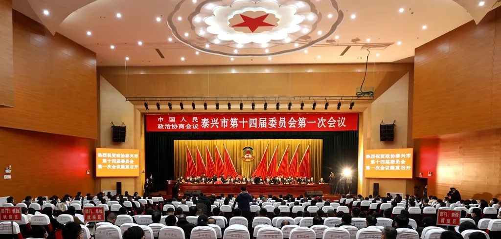 1月9日下午,中國(guó)人民政治協(xié)商會(huì)議泰興市第十四屆委員會(huì)第一次會(huì)議在市委黨校報(bào)告廳隆重開幕。會(huì)場(chǎng)氣氛莊重?zé)崃遥笳魅珖?guó)各族人民大團(tuán)結(jié)的中國(guó)人民政治協(xié)商會(huì)議會(huì)徽懸掛在主席臺(tái)正中,在分列兩側(cè)的十面紅旗映襯下,熠熠生輝。主席臺(tái)對(duì)面高高懸掛的橫幅格外醒目:“全域創(chuàng)新 全面轉(zhuǎn)型 全力打造產(chǎn)城融合、‘三生’協(xié)同的標(biāo)桿城市!”