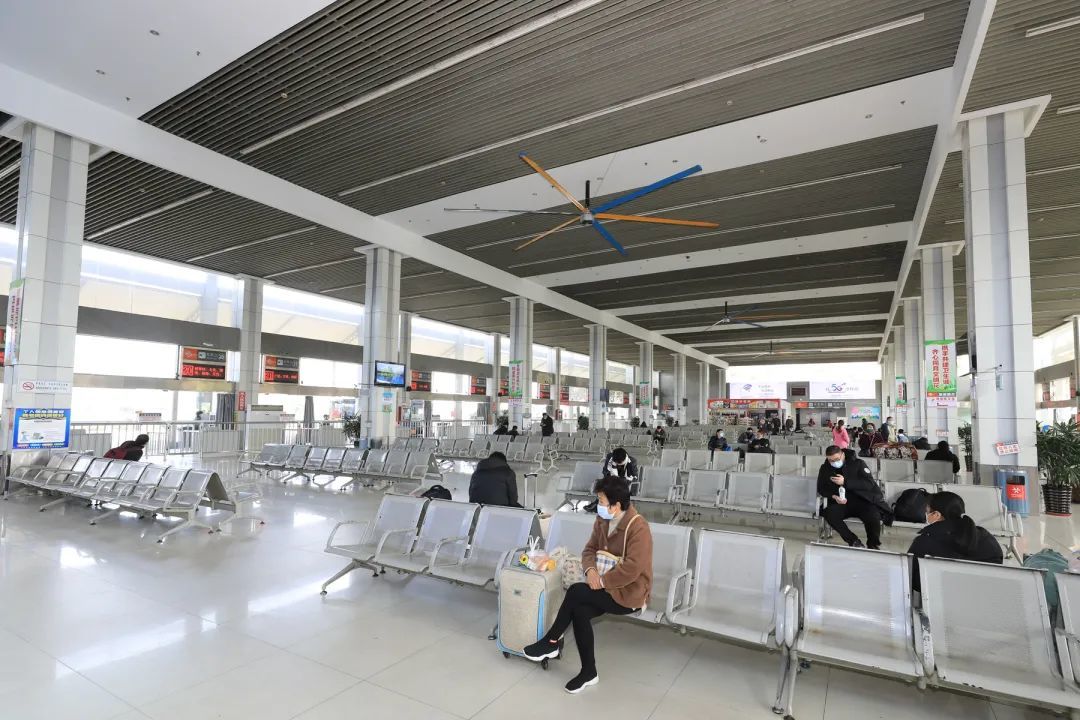候車大廳內 旅客們自覺規范佩戴口罩 主動間隔而坐 保持安全距離