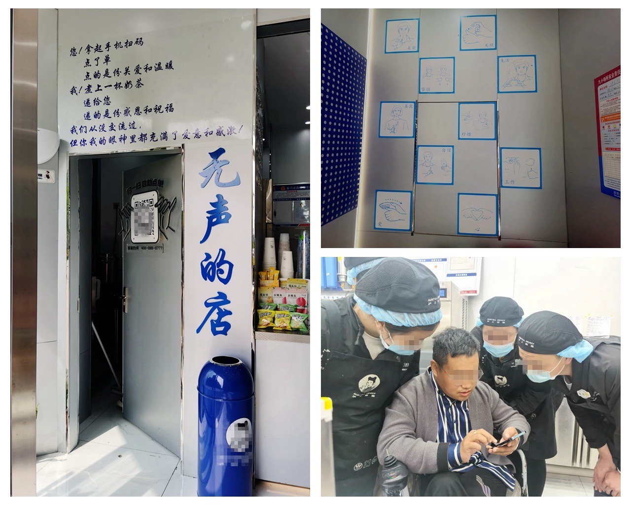 店里的員工,要么用手語交流,要么用寫字板交流,幾乎聽不到說話聲。有的,只是制作奶茶時容器碰撞聲、包裝時包裝袋發出的聲音、提前錄制好的語音提示聲……在江蘇省泰興市城區,有一家特別的奶茶店,店內裝修風格跟別的加盟店有很大的區別,店招牌上有著“無聲的店”四個藍色大字。這家店里的店員,大部分是聽障人士。