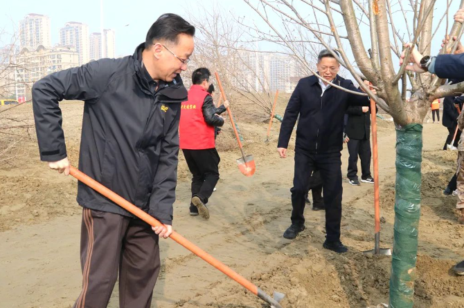 春回大地萬物蘇,植樹添綠正當時。3月12日上午,市委書記張坤,市長劉文榮等市四套班子負責人來到鎮海路南延綠化工程項目現場,與廣大干部群眾一起義務植樹,以實際行動號召全市人民攜手植綠護綠、共建生態家園。
