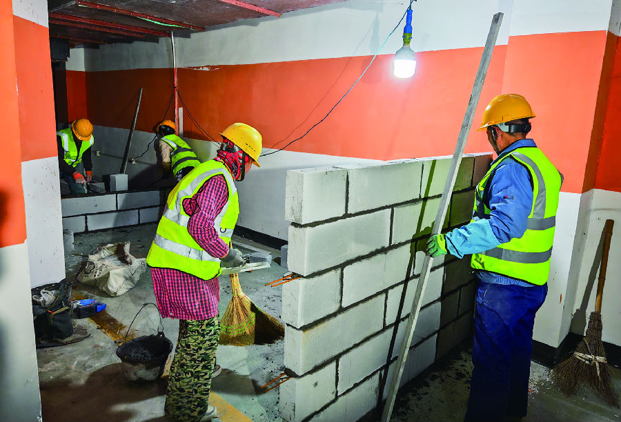 為筑牢住宅小區(qū)安全“防火墻”,今年年初,市住建局、市集建公司啟動(dòng)了城區(qū)居民住宅小區(qū)地下非機(jī)動(dòng)車(chē)停車(chē)庫(kù)改造項(xiàng)目,對(duì)寶格麗,金科集美雅苑,皇家水岸2期、4期,佳源威尼斯·西岱宮、凱旋宮、波旁宮,恒大悅府,金鳳商城等13個(gè)小區(qū)、40個(gè)地下非機(jī)動(dòng)車(chē)停車(chē)庫(kù)進(jìn)行改造。在砌筑防火隔墻的同時(shí),還將施劃地面停車(chē)標(biāo)線,規(guī)范車(chē)輛停放秩序。圖為錦繡華府小區(qū)地下非機(jī)動(dòng)車(chē)停車(chē)庫(kù),施工人員正在砌筑防火隔墻。 |
