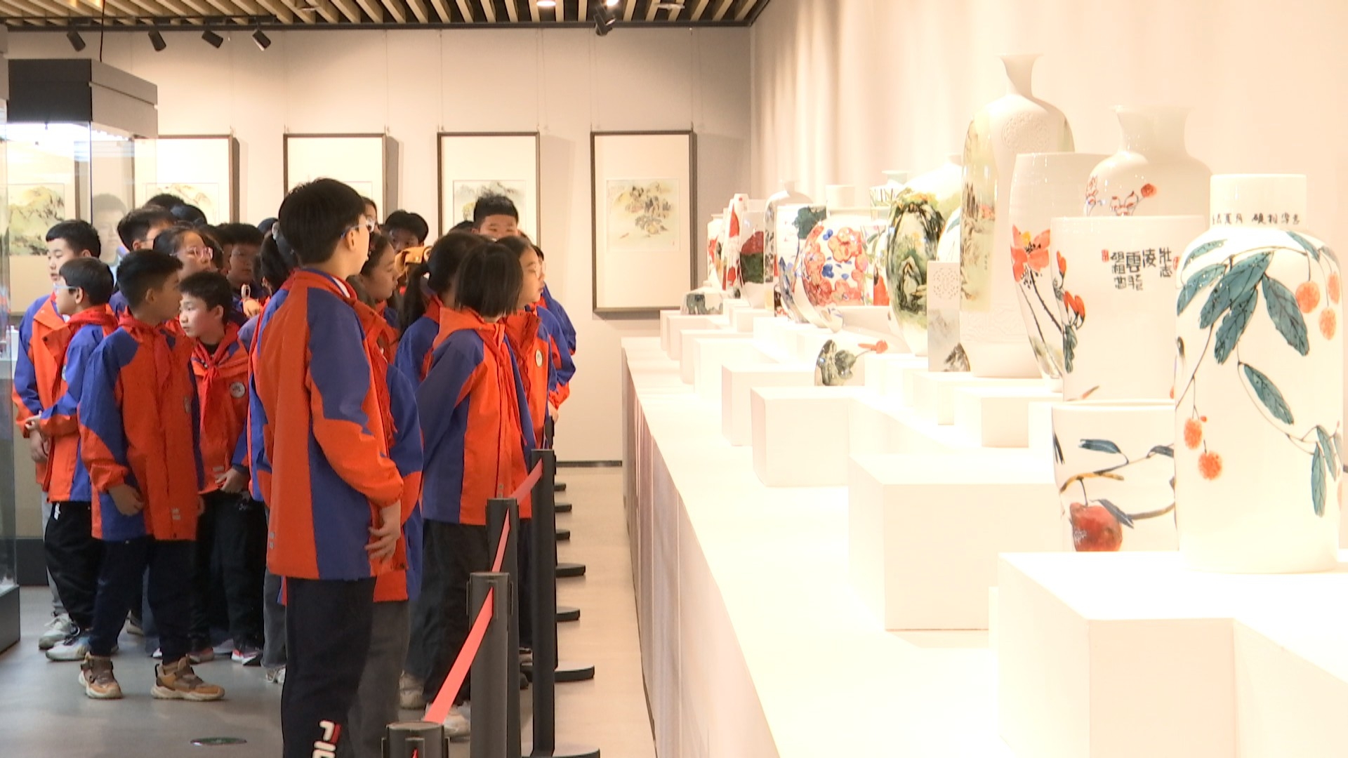 “我感覺這些作品栩栩如生,尤其是李硯祖教授創作的那套泰興主題茶具,特別生動有趣,上面畫的銀杏葉活靈活現。”泰師附小教育集團東潤分校學生楊易坤分享觀展感受。學生殷梓鈺則有別樣收獲:“李硯祖教授年事已高,還一直在堅持做陶瓷,特別讓人敬佩。我學習鋼琴,雖然一直在練習,但有時候會想放棄,以后我也要像他一樣堅持下去。”