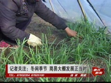 眼下已進入農村冬閑時節,記者在部分鄉鎮采訪時了解到:部分農戶利用冬閑進行簡易大棚種植,取得了不菲的經濟效益。農業專家認為:冬閑發展簡易大棚不失為農業增收的好辦法。 12月7日...[詳細]