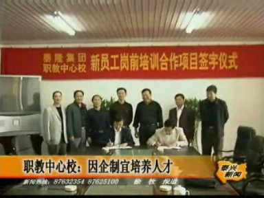 10月8日,泰興職教中心校與泰隆集團簽訂了新員工機械加工技術培訓合作項目,培訓內容包括機械加工技術基礎、普通車床操作,職教中心校負責提供師資和培訓場所。 據了解,近幾年,市職...[詳細]