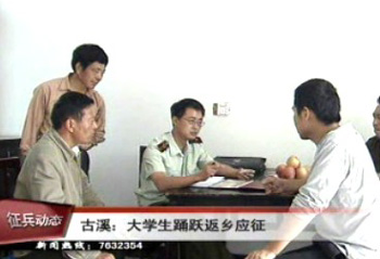 2006年征兵工作已經開始,連日來,古溪鎮在外工作、學習的大學生紛紛返鄉應征,接受祖國挑選。 顧海波是古溪鎮溪北村人,今年6月份剛剛從淮海工學院地理空間信息系畢業,畢業后在上海...[詳細]