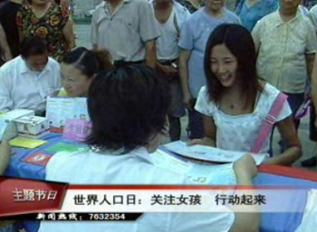 • 7月11日是第17個(gè)世界人口日,市計(jì)生部門在城區(qū)開展形式多樣的宣傳咨詢活動(dòng),紀(jì)念第17個(gè)世界人口日。 上午市計(jì)生部門在鼓樓文化廣場(chǎng)舉行大型宣傳咨詢活動(dòng)。呼吁全社會(huì)關(guān)愛女孩,關(guān)注全...[詳細(xì)]