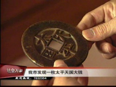 趙玉剛是一名古董收藏愛好者,近日他從大生鎮一戶農民家中購得一枚大型銅錢,據專家鑒定,銅錢為太平天國農民起義軍鑄造的大錢。 錢的正面鑄有宋體"太平天國"字樣,背面鑄有"圣寶"...[詳細]