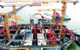(記者 周冰 通訊員 凌鴻茹)春節(jié)期間,在常泰長江大橋5號(hào)墩沉井施工現(xiàn)場,一臺(tái)臺(tái)混凝土攪拌車排成長龍,通過傳送泵向五號(hào)墩輸送著混凝土。在墩沉井附近,幾艘浮吊船正停靠在旁,不斷揮舞著手臂進(jìn)行作業(yè),[詳細(xì)]