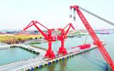 圖為碼頭2泊位2臺(tái)40米 40噸門(mén)機(jī)順利安裝完成。 6月4日,由中鐵建港航局泰興港務(wù)有限公司投資建設(shè)運(yùn)營(yíng)的泰興港區(qū)七圩公用碼頭門(mén)機(jī)設(shè)備安裝圓滿完成,碼頭現(xiàn)場(chǎng)亮出紅色風(fēng)景線。該碼頭作為中國(guó)鐵建首個(gè)自主建設(shè)運(yùn)[詳細(xì)]