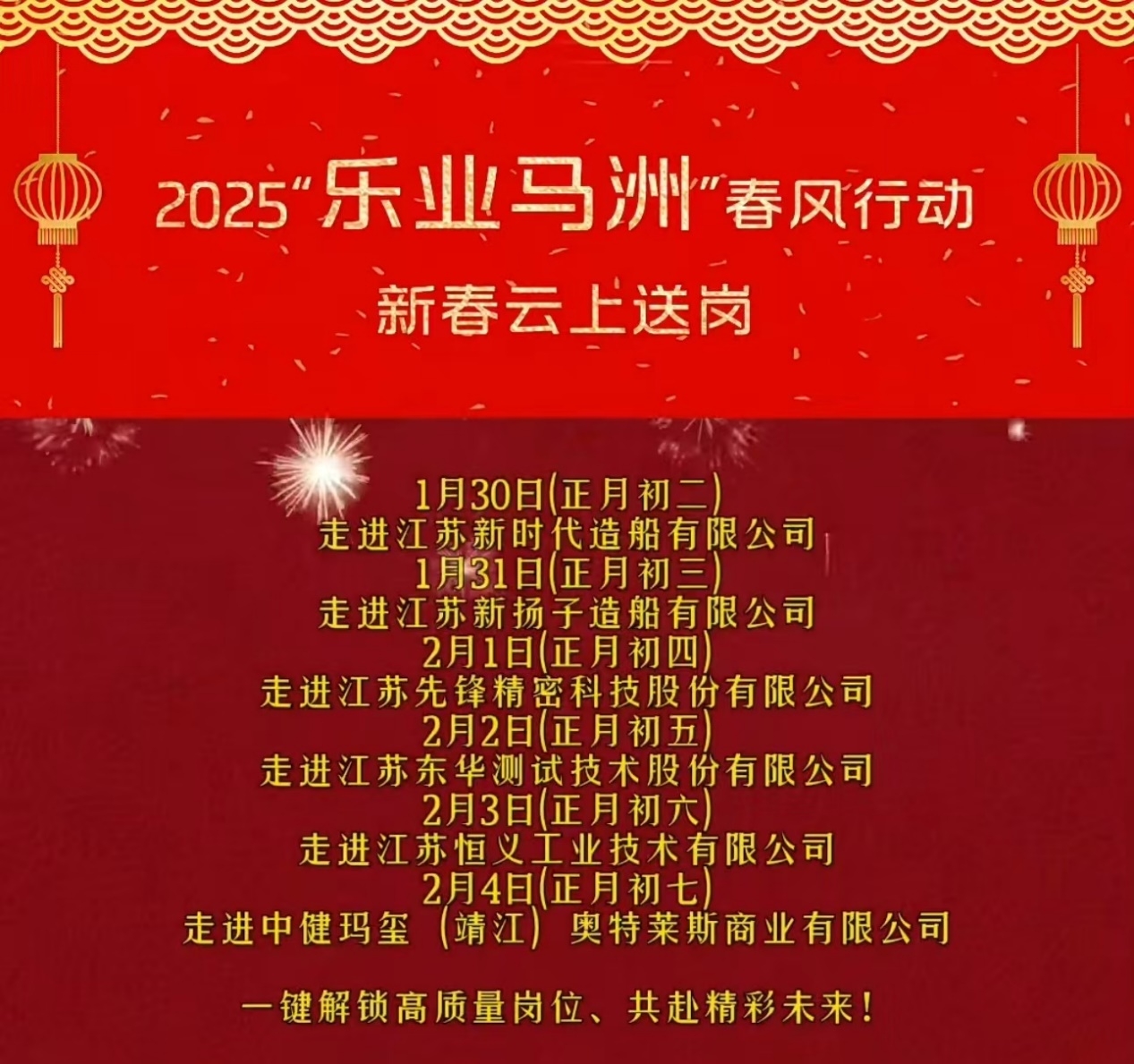 & 8203; 當(dāng)傳統(tǒng)新春遇上前沿職場(chǎng),新年新玩法,招聘大不同。春節(jié)假期,靖江花式線上招聘打破時(shí)空局限,變網(wǎng)絡(luò)流量為就業(yè)留量。 其中,樂(lè)業(yè)馬洲 就在靖江新春云上訪企送崗活動(dòng),將分別走進(jìn)新時(shí)代造船、新?lián)P子造船、先鋒精科等6家重點(diǎn)企業(yè),開(kāi)展沉浸式訪企探崗,[詳細(xì)]